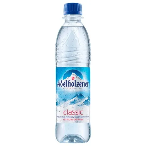 Adelholzener Mineralwasser Classic 0,5l. Mit Kohlensäure.